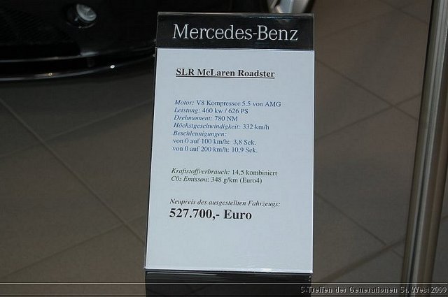Im Mai 2009 lunden der R129-Stammtisch-West in Zusammenarbeit mit dem Autohaus Evertz in Moers zum S-Treffen der Generationen ein. Über 300 Fahrzeuge mit mehr als 400 Besuchern folgtem dem Aufruf. Hier konnte man dann aktiv und Auge in Auge mit den Leuten des R129-Stammtisch-West fachsimpeln. Das Autohaus Evertz boot kleinere Wartungsmaßnahmen an und diverse andere Firmen rund um die Autopflege boten ihre Leistungen an.